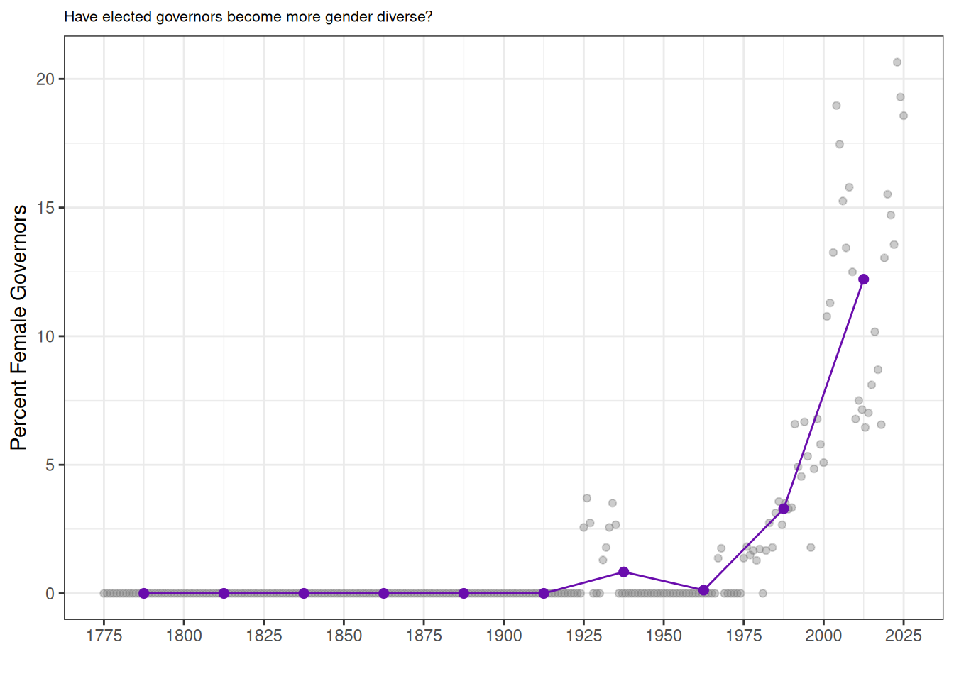 ggtitle("Have elected governors become more gender diverse?") +