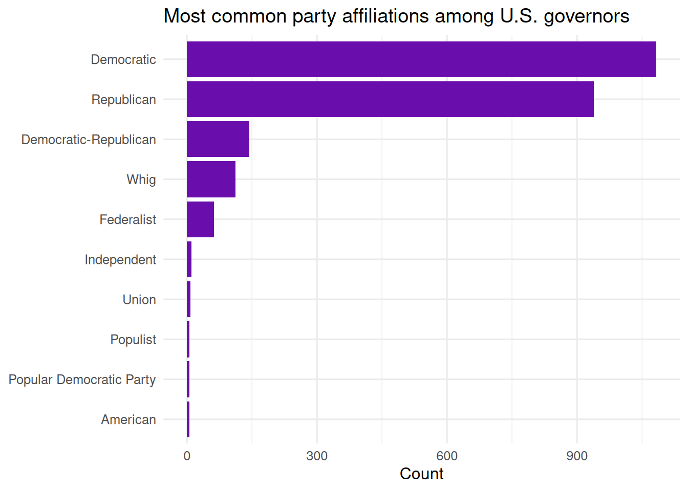 title = "Most common party affiliations among U.S. governors",